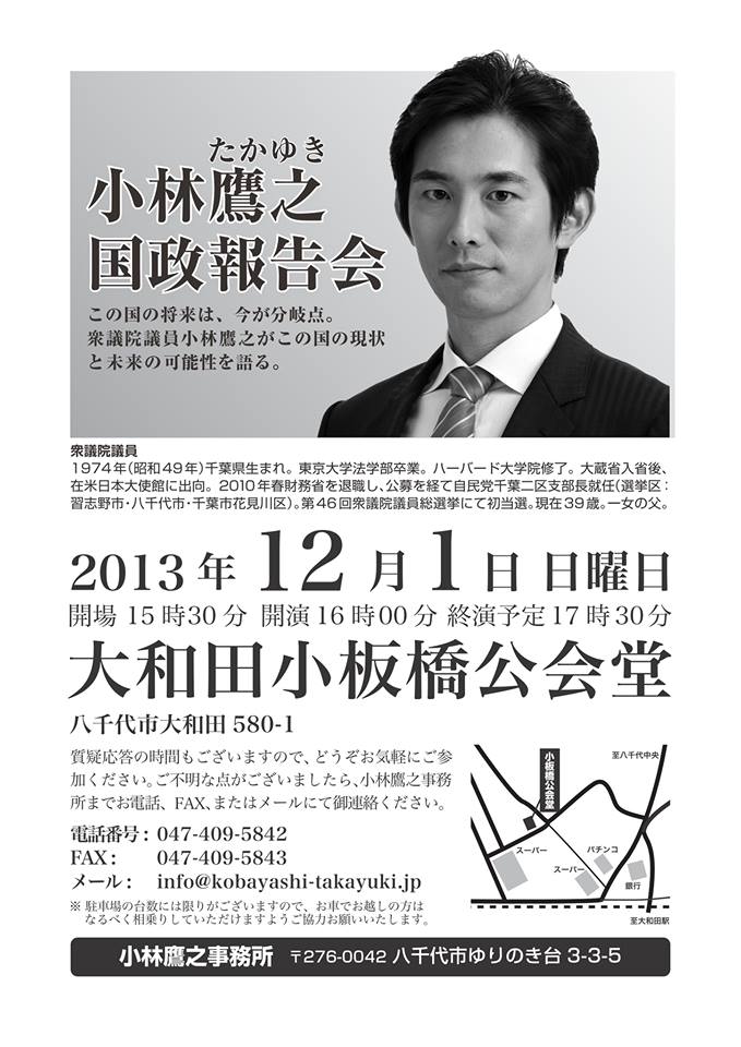 八千代市大和田町で「小林鷹之と語る会」(国政報告会)を開催いたします。