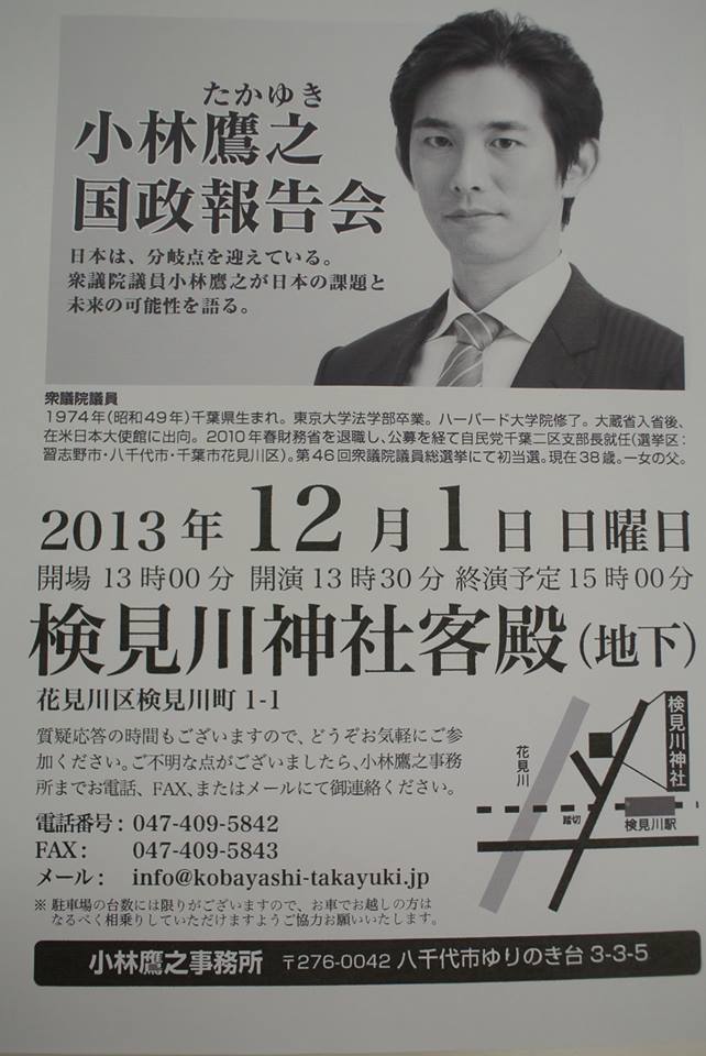 千葉市花見川区検見川町で「小林鷹之と語る会」(国政報告会)を開催いたします