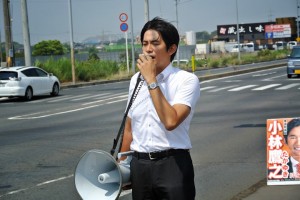 スケジュールの合間に街頭演説をしました(武石IC付近にて)