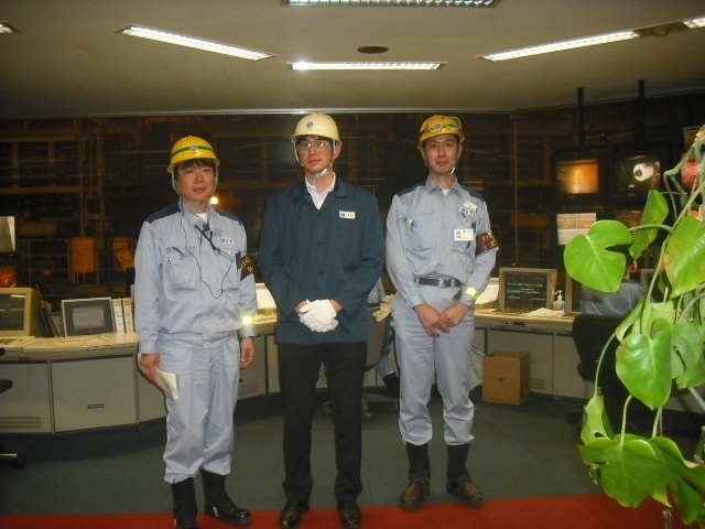 (工場内のオペレーションルームにて。ここは涼しいですが、外は高温の鉄板が通り過ぎると体感温度が急上昇!)