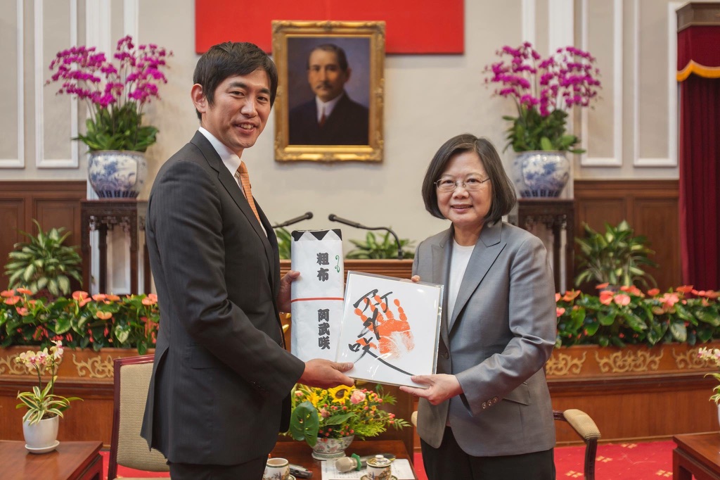 なお、余談ながら、蔡英文総統には、私の地元習志野市に所在する阿武松部屋の甚平、幕内力の阿武咲関の反物とサイン入り手形を贈答させて頂きました。