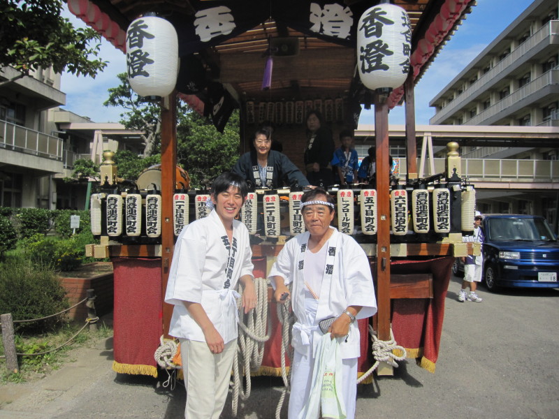 (左:宮本博之市議と。中:頭一つ高いのが私。右:神輿をさしている瞬間)